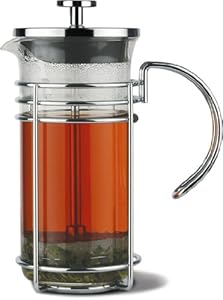 Would you like a true premium French Press unlike the common types everybody else seems to have? Quality you can see and feel, makes you the tastiest coffee or tea and gives a bold look and presence to your table top. Thats the MADRID French press coffee and tea maker by GROSCHE. A uniquely designed and crafted French press with fine chrome construction makes for a wonderful table top coffee and tea making experience. Commonly known as a French Press coffee maker, this style of manual coffee making has been long accepted as perhaps the best way to make full flavored coffee. By allowing the coarse ground coffee (which is the grind you should always use in a French press - finer grinds can seep through the filters) to infuser completely over a few minutes, the flavors and oils extracted in this process are unmatched. It has a dual filter system, with the main press being one, and another one in the lid as well. When You make your coffee or tea, turn the lid to close the press while your coffee or tea steeps, and turn it again to open it to pour. That will retain heat and allow for better flavor for your coffee or tea. The MADRID French press coffee and tea maker is truly a premium French press unlike any other, for a connoisseur of fine tasting coffees or teas. Replacement beakers are available from the manufacturer as well. The MADRID French press has an ultra premium chrome housing. It is dishwasher safe as well. Since it doesn't use any electricity, and is easy to rinse and clean, requires no disposable filters, a French press coffee and tea maker like MADRID is also perfect for for taking with you on your travels, or camping as well. For more information and product images and demonstration videos please see the manufacturer's websites.