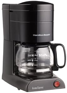 Great for a one- or two-person home or for a quick pick-me-up at work, the Hamilton Beach Aroma Express coffeemaker offers the capabilities of a full-grown machine in a compact form. Just 10-1/2 inches high, the machine features a wide-mouth water reservoir and a swing-out filter basket for easy access and removal. Hamilton Beach builds in a stop-and-pour feature--so you can get a cup mid-brew--and a power switch that illuminates when the machine is on. The 25-ounce carafe is manageable and tidy, with a generous pour spout and a comfortable handle, while the nonstick hot plate ensures that your second cup is as deliciously hot as the first. Both the filter basket and carafe on this model can go in the dishwasher. --Emily Bedard
