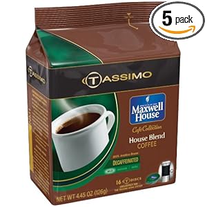 Maxwell House Cafe Collection House Blend Decaffeinated Coffee, Medium T-Discs for Tassimo Coffeemakers, 16-Count Packages (Pack of 5) Rating :